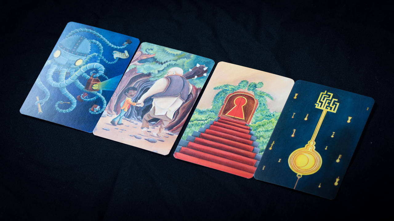 他のプレイヤーは、その「ワード」に合うと思うカードを手持ちの中から選んで、親プレイヤーに絵柄が分からないように渡します。親は、最初に自分が選んだカードに集まったカードを加えた計4枚を、カード置き場に展開して絵柄を全員に見せます。