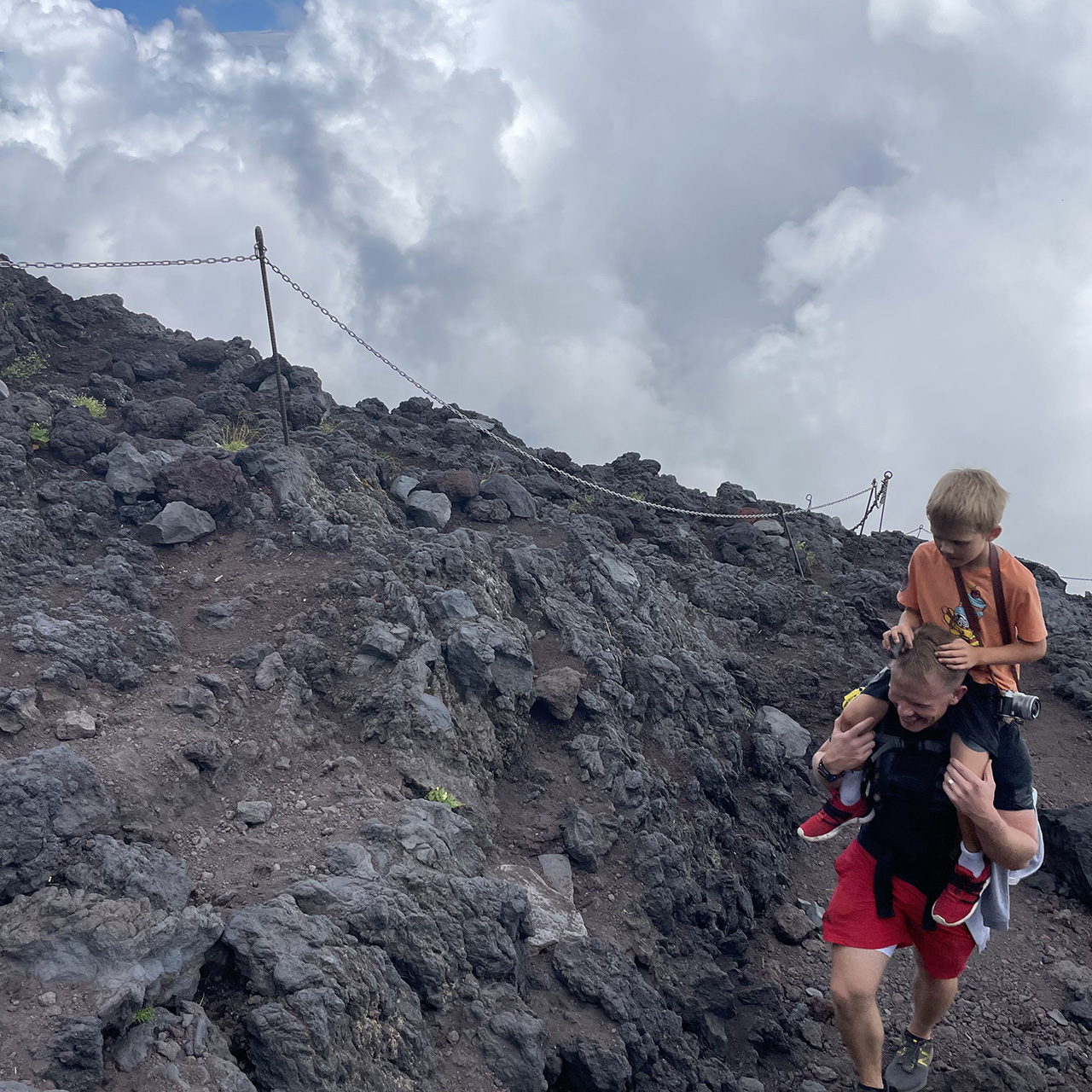 ひたすらダッシュで降りてきて、2時間強で五合目に戻るという、100回以上の富士山ガイドのREOも驚愕の速さ。w