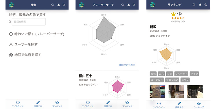 見ている人が多いんだなーと感じたのと、日本酒に特化しているからこそ、目的が絞られてて使い勝手の良いアプリに仕上がっているんだなと感じました。